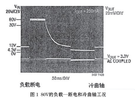 “冷曲軸”(cold crank)段,發(fā)生在汽車發(fā)動機經(jīng)受冷卻或凝固期間,發(fā)動機油變的非常粘滯。因而要求起動機輸出更大的轉矩,相繼需要蓄電池提供更大的電流。這一大的電流負載導致蓄電池/一次母線的電壓降低,甚至低于4V的點火電壓。隨后,又回復至額定電壓13.8V(圖1)。這在某些應用場合,例如發(fā)動電機控制、安全系統(tǒng)和導航系統(tǒng)均不可避免。故要求具有良好調(diào)節(jié)的輸出電壓(一般為3.3V)貫穿“冷曲軸”段,以實現(xiàn)全過程的無間斷(連續(xù))運行。