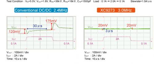 ▲図1 與過去的產品的高速瞬態(tài)響應比較