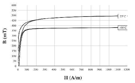 我們在設(shè)計反激變壓器以及一些儲能電感時,設(shè)定最大磁通量Bm尤為關(guān)鍵。由于電源起機和短路保護時最大磁通量Bm大于穩(wěn)態(tài)工作時的Bm,所以我設(shè)定變壓器的Bm時需要預(yù)留足夠的裕度。如圖 1所示,磁芯溫度為100℃曲線可知Bm=0.35T時磁芯接近飽和,所以出于對電源起機、輸出過流和短路等極限情況考慮,鐵氧體P4材質(zhì)的變壓器的穩(wěn)態(tài)Bm一般小于0.25T。