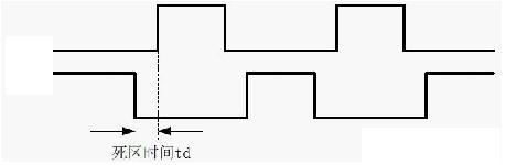 對于半橋、全橋和LLC諧振等一些H橋或半H橋的拓?fù)潆娫?,PWM的死區(qū)時間設(shè)定對電源可靠性至關(guān)重要。實際上設(shè)定死區(qū)時間實則為了避免上、下管直通從而導(dǎo)致電源炸機,也就是說設(shè)定一段上、下管同時關(guān)斷的時間,在上管關(guān)斷后延遲一段時間再導(dǎo)通下管或在下管關(guān)斷后延遲一段時間再導(dǎo)通上管,如圖 2所示td即為死區(qū)時間。
