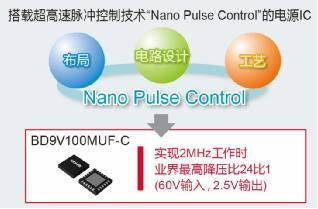 為滿足新市場對電源IC的需求,ROHM充分利用模擬設(shè)計技術(shù)和電源系統(tǒng)工藝技術(shù)優(yōu)勢及垂直統(tǒng)合型生產(chǎn)體制,開發(fā)出超高速脈沖控制技術(shù)“Nano Pulse Control”,實(shí)現(xiàn)了“電源系統(tǒng)的單芯片化”。