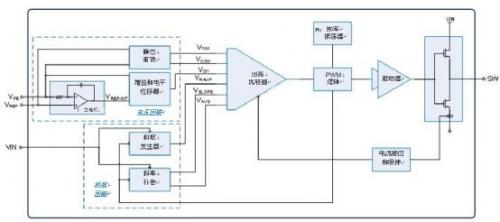 l斜坡回路根據(jù)VIN和PWM信號(hào)生成斜坡電壓。經(jīng)優(yōu)化的斜坡補(bǔ)償值僅為下降斜率斜坡電壓的一半。