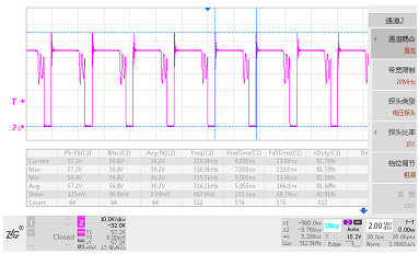 圖1 穩(wěn)態(tài)工作時MOS管波形Vds_max=57.2V