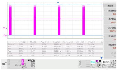 圖2 輸出短路時MOS管波形Vds_max=67.2V