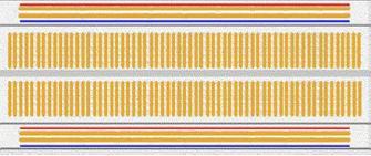 電阻器和電容器等元件的引線插入孔中。每組五個(gè)孔通過(guò)下面的金屬條連接形成一個(gè)節(jié)點(diǎn)。節(jié)點(diǎn)是電路中兩個(gè)或多個(gè)元件連接的點(diǎn)。可通過(guò)將元件引線插入共同節(jié)點(diǎn)來(lái)實(shí)現(xiàn)元件之間的連接。試驗(yàn)板頂部和底部用紅色和藍(lán)色條紋表示的一長(zhǎng)排孔用于電源連接。插入元件并用跳線連接在一起便可構(gòu)建電路的其余部分。此類試驗(yàn)板最好搭配使用實(shí)芯線而不是多股絞合線。為方便起見(jiàn),還提供配有插入式引腳的跳線。