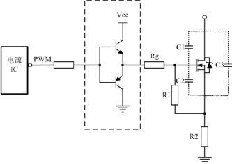 (1)開關管開通瞬時,驅(qū)動電路應能提供足夠大的充電電流使MOSFET柵源極間電壓迅速上升到所需值,保證開關管能快速開通且不存在上升沿的高頻振蕩。