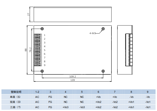 輸出電壓:05V,12V,15V,19V, 28V,24V,48V,110V