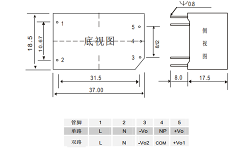 | 安裝尺寸及管腳定義: | |||||||||||||